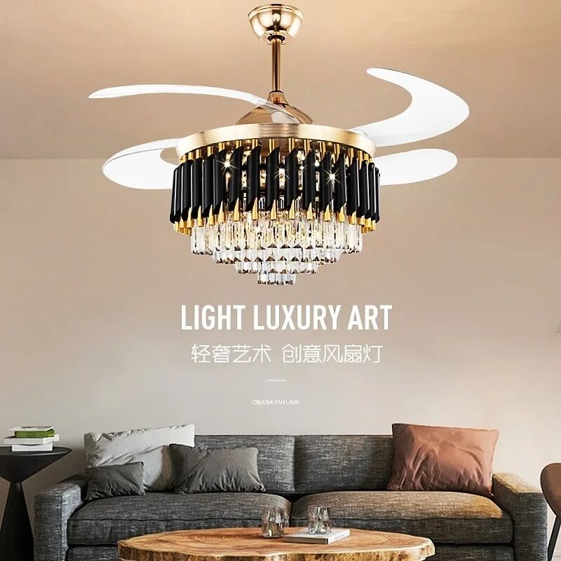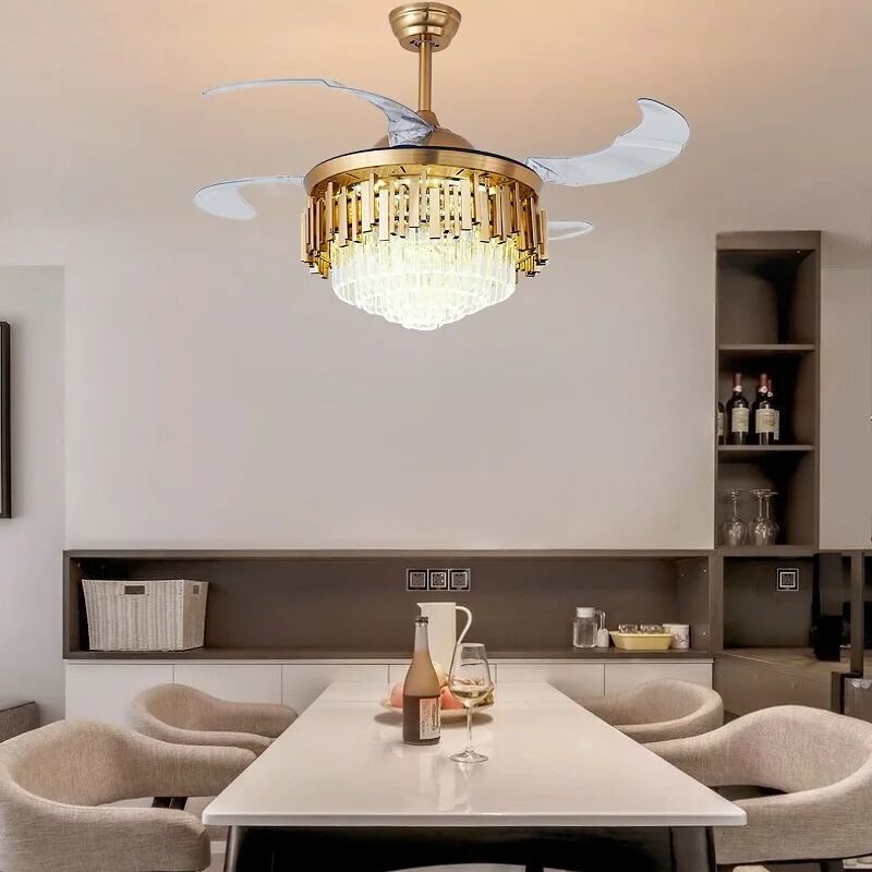 Retractable Blade Bedroom Remote Control 42 48 Inch Luxury Crystal Ceiling Fan lamp(WH-VLL-41)