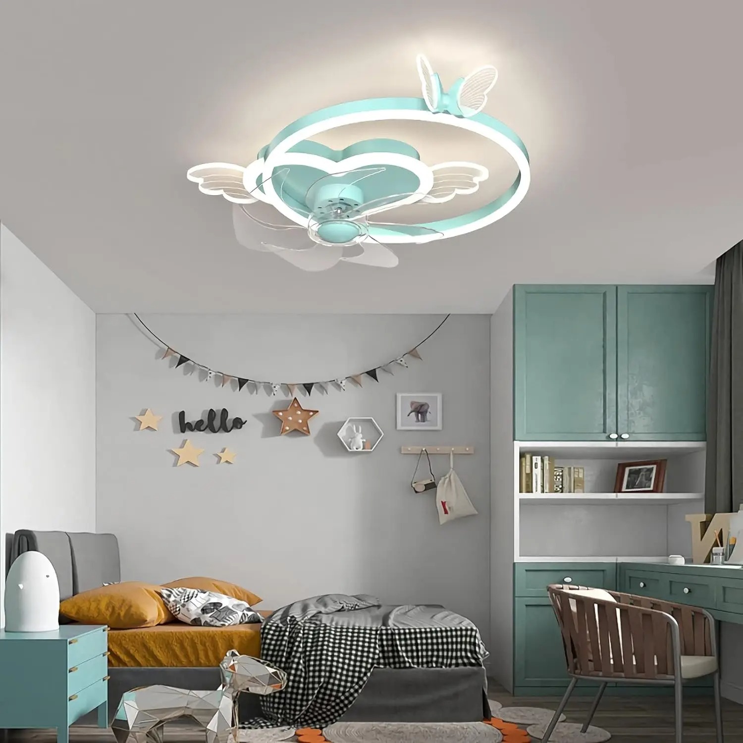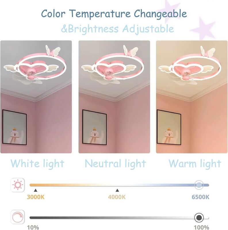 Quiet Fan Ceiling Light with Remote 6 Speeds Led Dimmable pink Kids Ceiling Fans with Lights(WH-CLL-54)