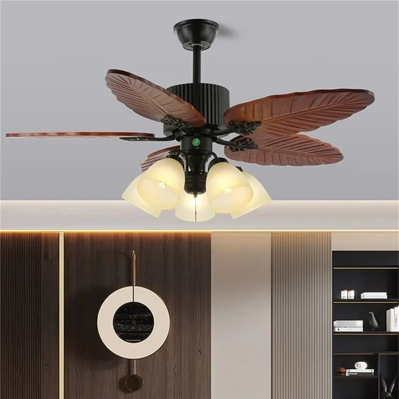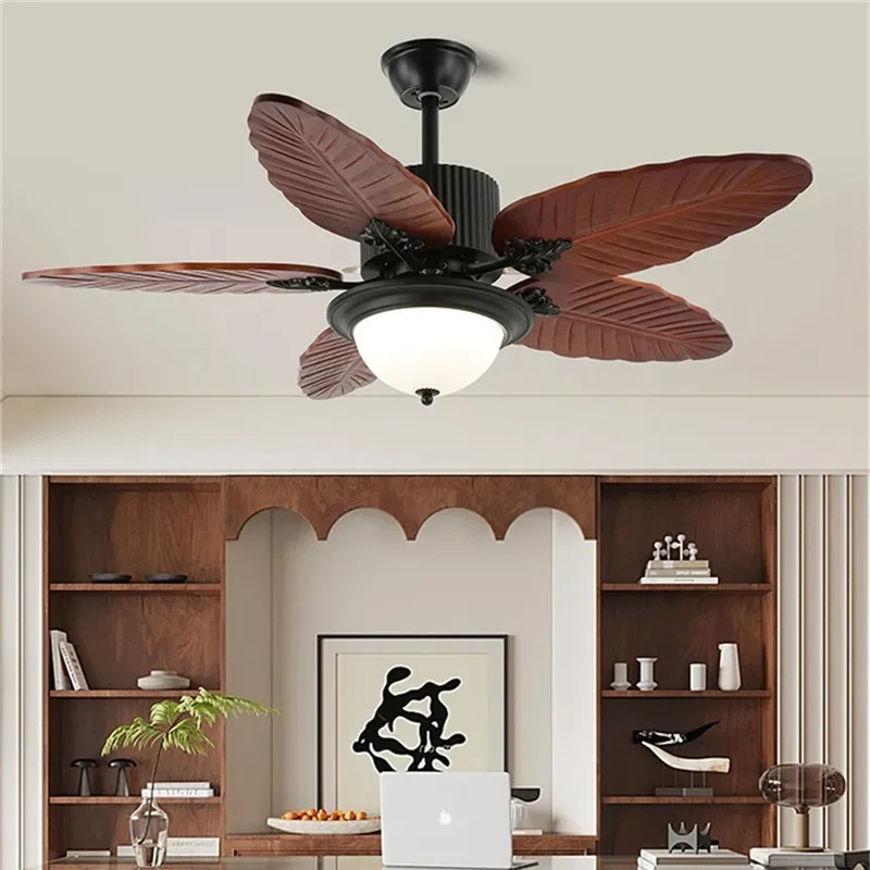 American Retro Living Room Restaurant Ceiling Fan Light Remote Electric Fan Light Banana Leaf Fan Lamp(WH-CLL-58)