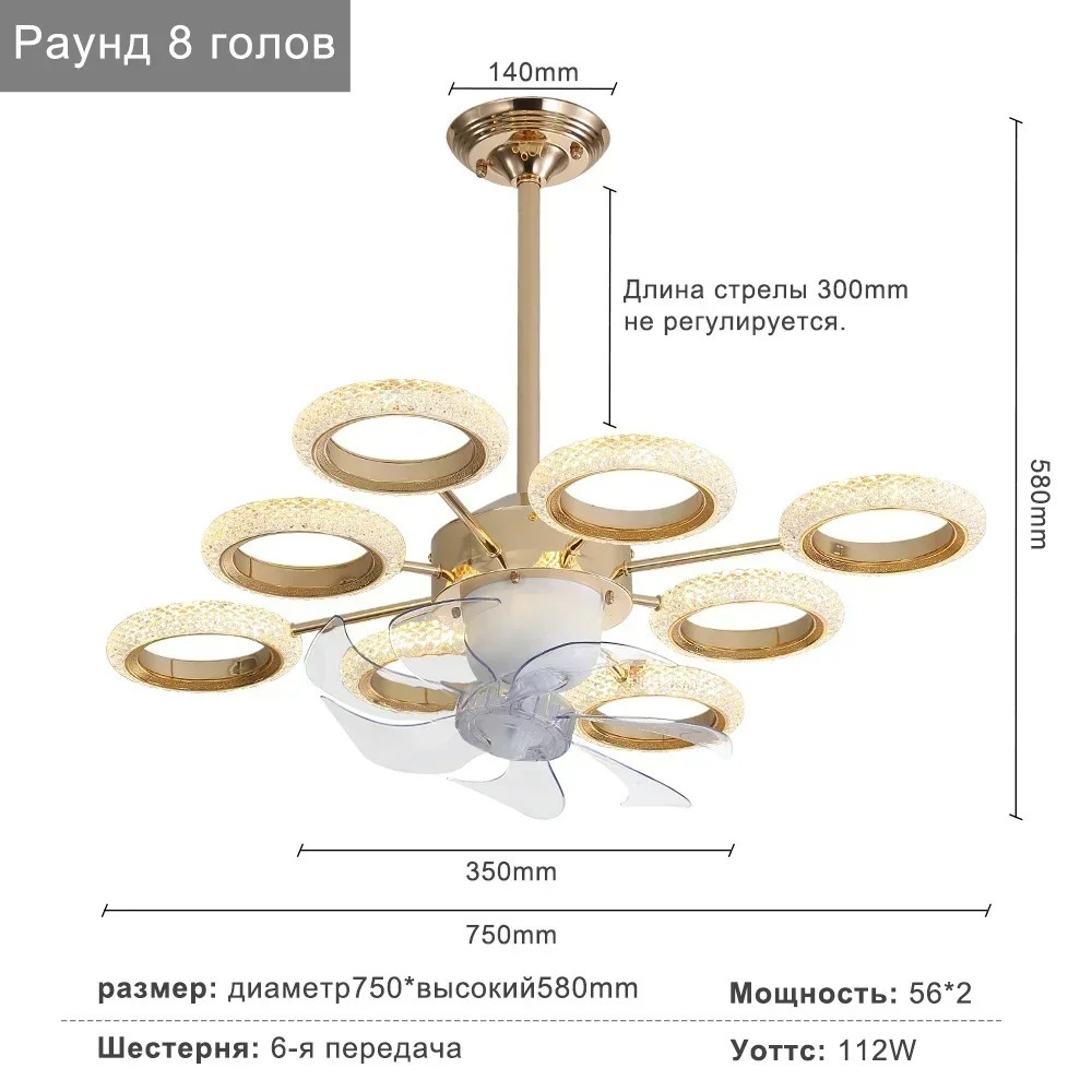 Dimmable Luxury Dinning Room LIving Room Chandelier Fan Crystal Led Ceiling Fan Lamp with Light (WH-CLL-67)