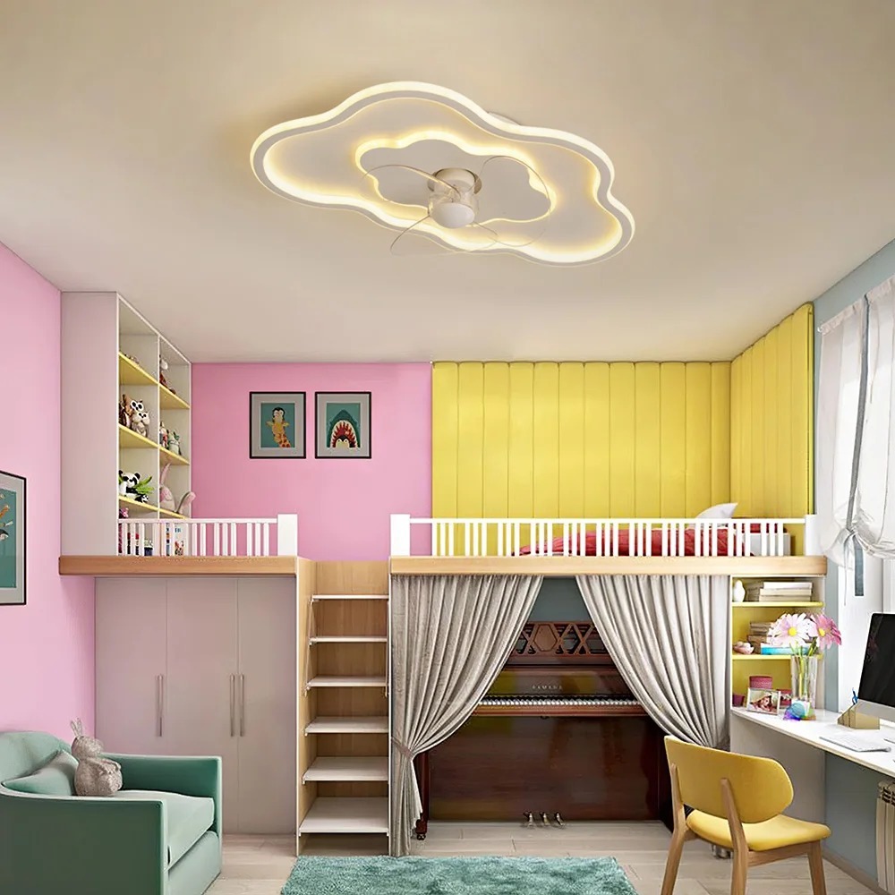Home Office Cloud-Shaped 6 Speeds 35W Reversible Motor Ceiling Mount LED Fan Light (WH-CLL-75)