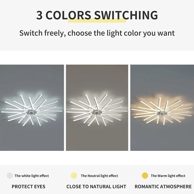 Bedroom Remote Control Reversible Blades Fans Led Invisible branch Ceiling Fan Lamp (WH-CLL-79)