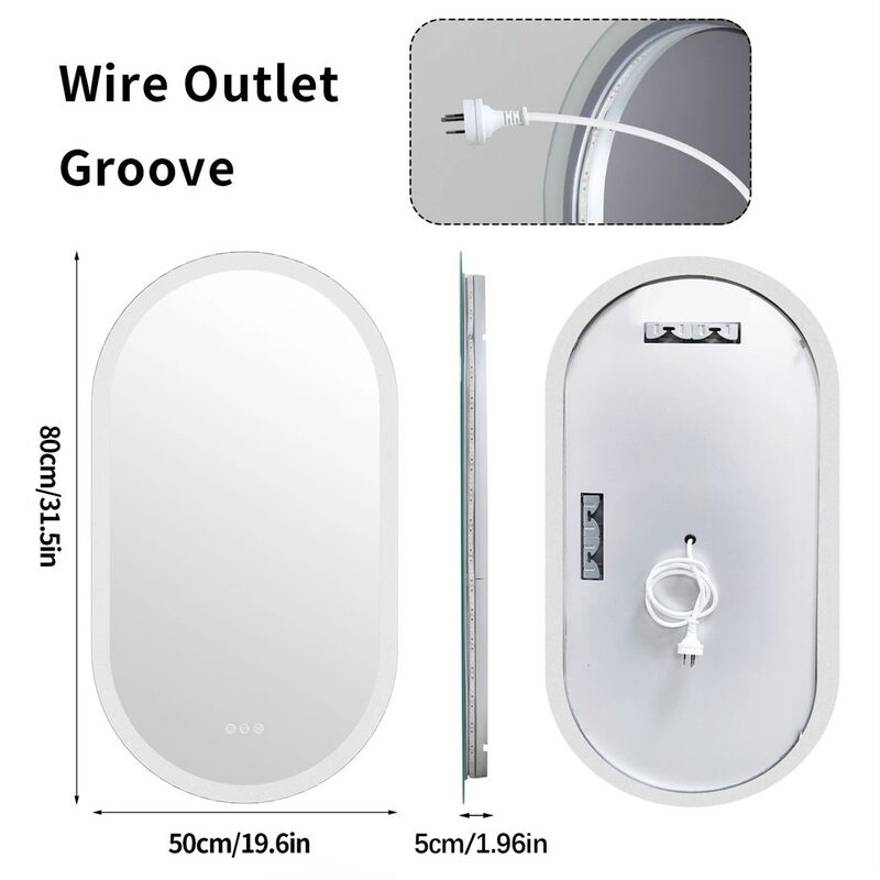 Dimmable 3 Colors Anti-Fog Light Memory IP65 CRI95 Large Wall Mounted Oval Mirror with lamp(WH-MR-102)